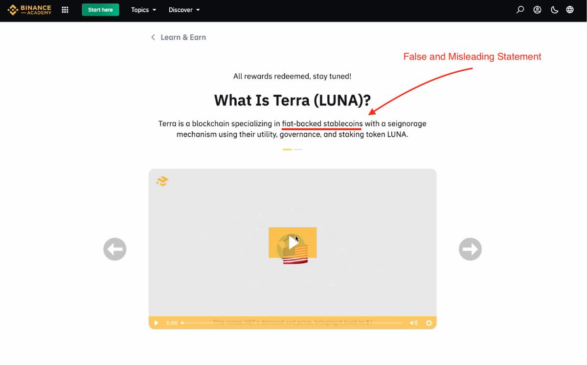 @binance is now frantically taking down their customer-facing UST messaging. An hour ago, this page and tweet were taken down. Remember, exchanges that made misrepresentations without the proper risk disclosures will be sued as well. Many downplayed risks and lied about backing.pic.twitter.com/ZBCmafcB4s