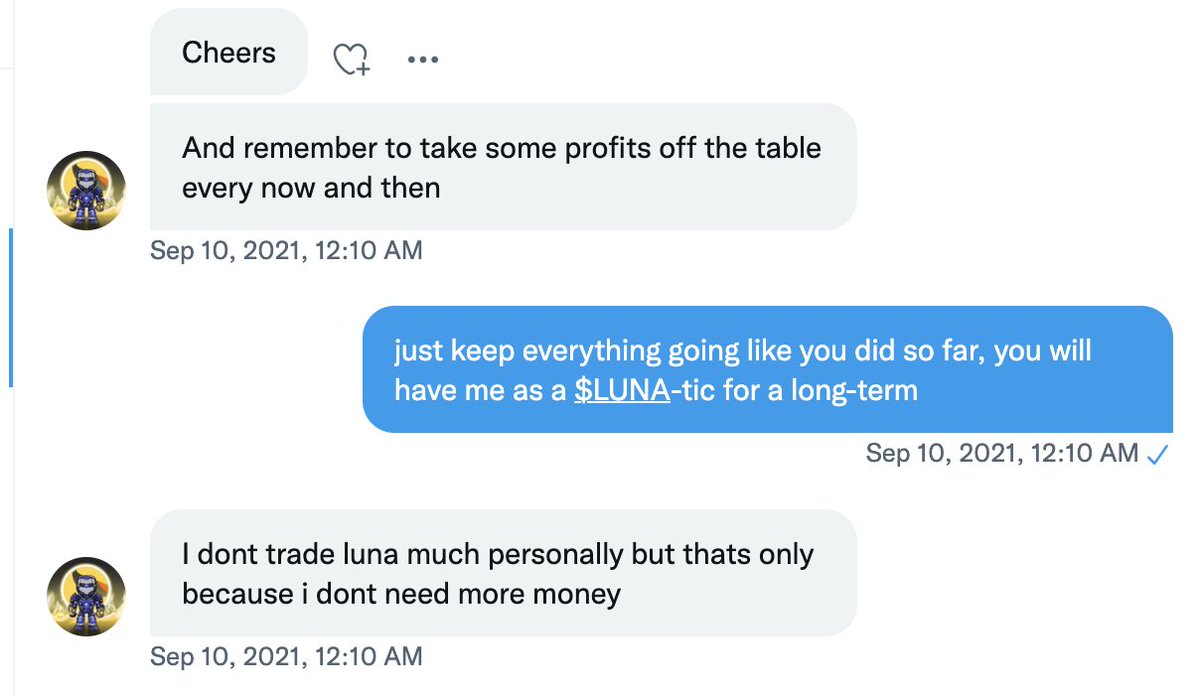 Fascinating... "I don't trade LUNA much personally," "I don't need more money" will probably turn out to be lies