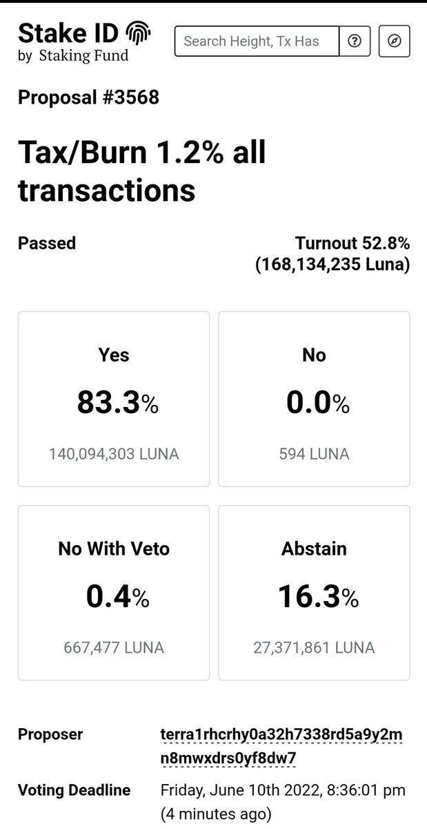 Well, I asked them point blank. Do Kwon and TFL were all in the chat. They don't really seem to care. I suggest trying it again with a paramchange proposal instead.