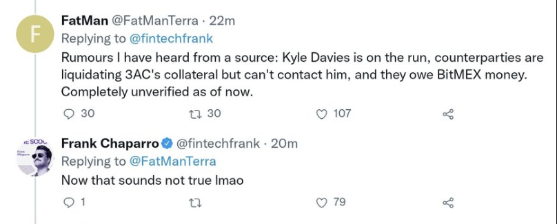[DB] FTX, Deribit and BitMEX have liquidated Three Arrows Capital’s positions, sources tell The Block. Three Arrows owes BitMEX around $6 million, said one of the sources.