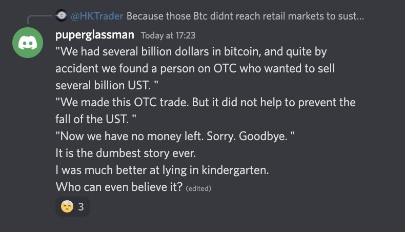 There's a sliver of it being realistic though. A lot of people had confidence that BTC was going to begin a decline, so the idea of selling it for UST at a trade premium was probably attractive enough, assuming those same people weren't convinced that Terra was going to implode.