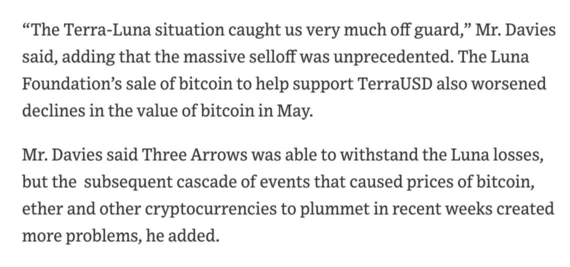 3AC speaks to the WSJ. https://www.wsj.com/articles/battered-crypto-hedge-fund-three-arrows-capital-considers-asset-sales-bailout-11655469932?mod=latest_headlines … This is all Terra contagion. @stablekwon Men will literally collapse an entire industry instead of getting therapypic.twitter.com/pYdAruNpnG