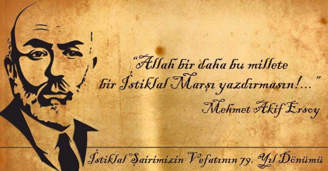 "Vefatının 83. Yıl dönümünde İstiklal şairimiz Mehmet Akif Ersoy'u rahmet, minnet ve şükranla anıyoruz." Ruhun şâd, mekanın cennet olsun.