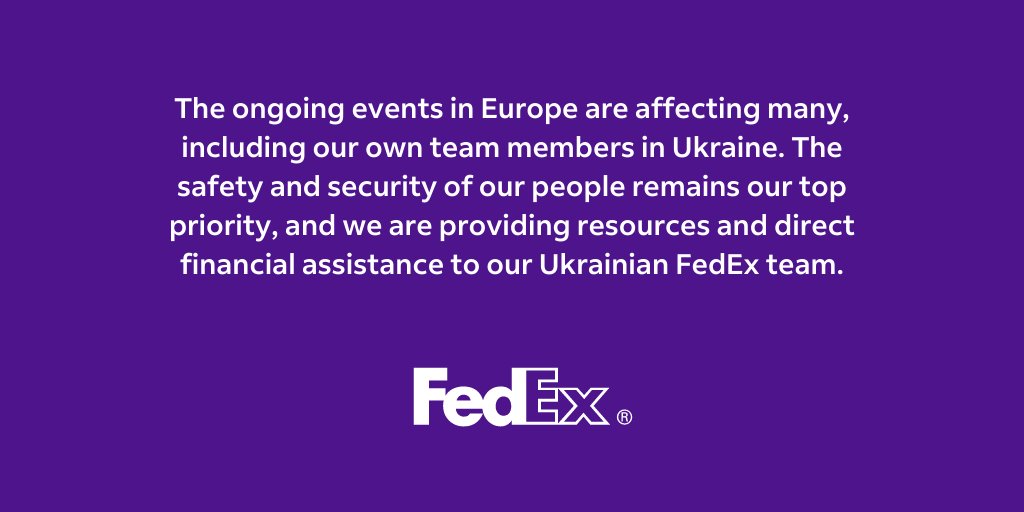 We are providing relief aid and humanitarian assistance to our team members and the people impacted by the conflict in Ukraine. http://at.van.fedex.com/6012wkdo6 pic.twitter.com/FLthR249eo
