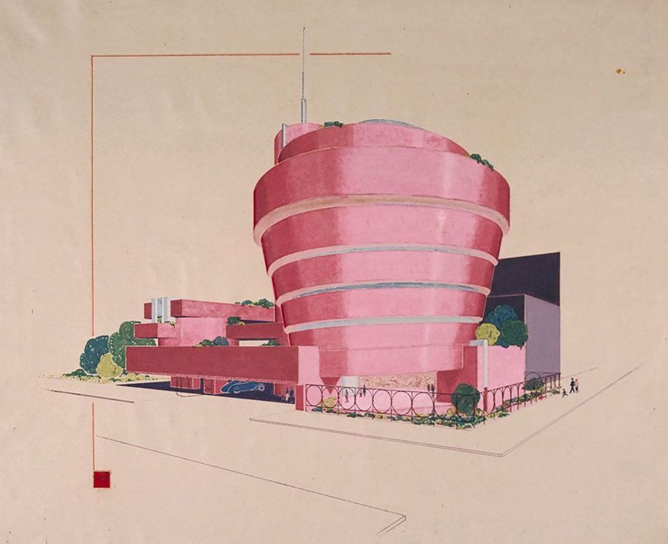 Frank Lloyd Wright's ink drawing of the Solomon R. Guggenheim Museum project, red-coloured version (1943)pic.twitter.com/10WbiuNbnc