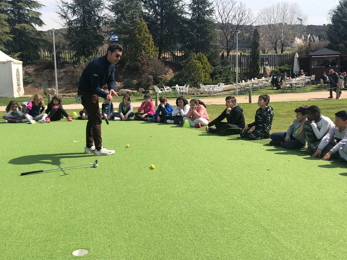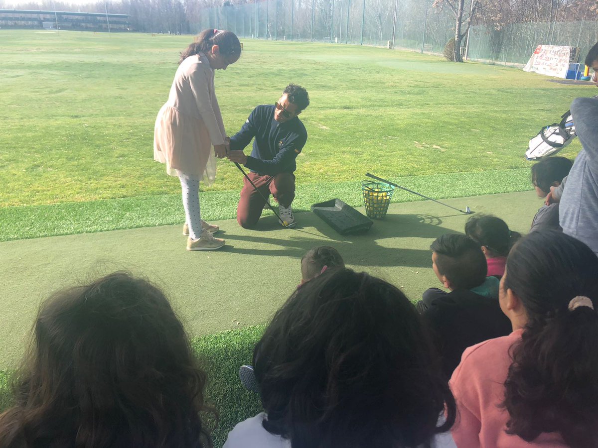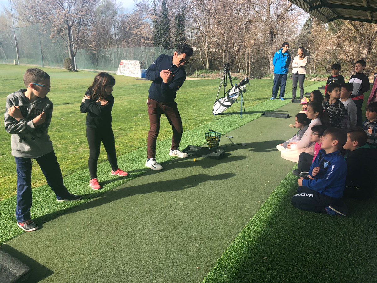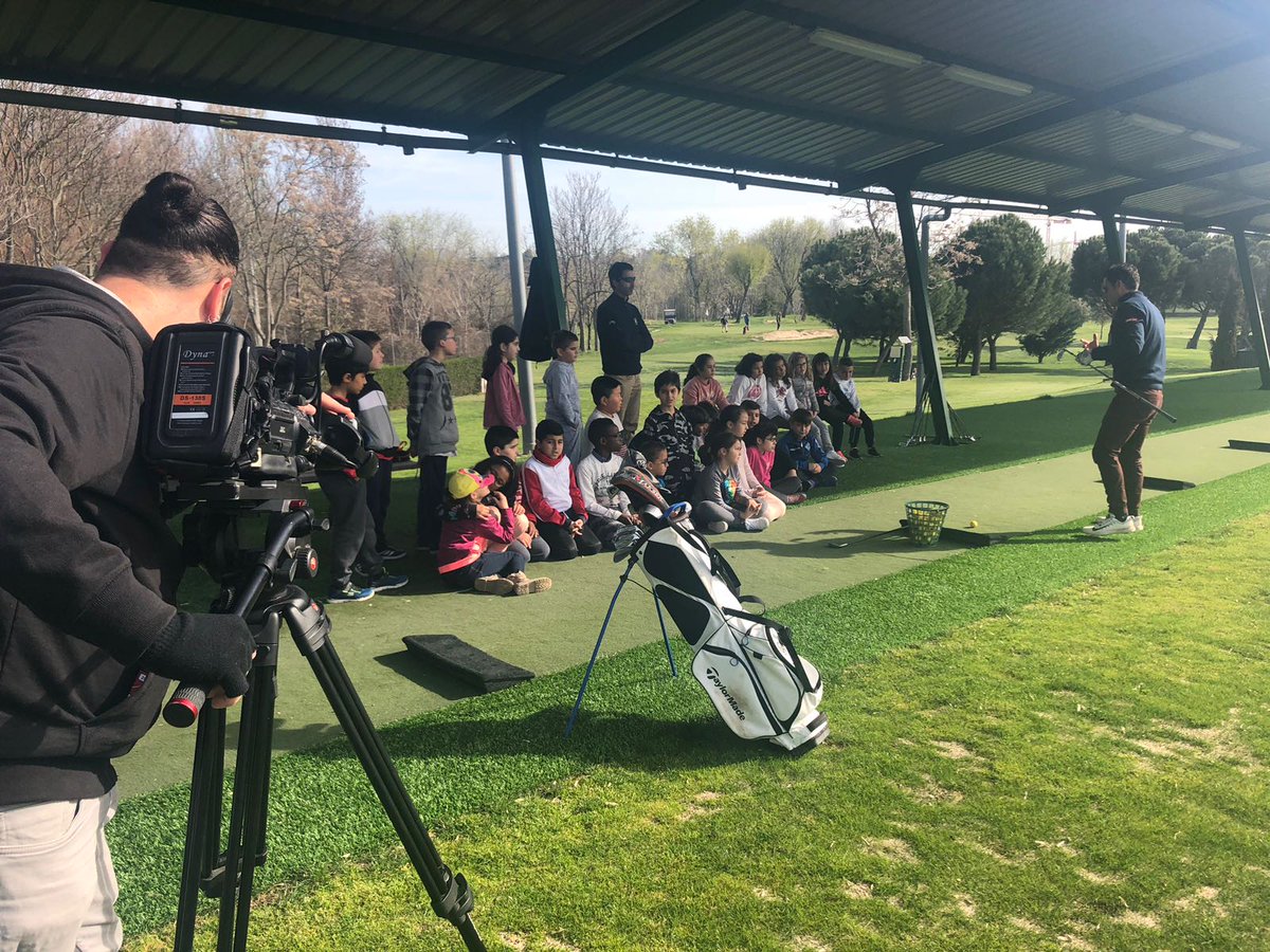 Grabando a los niños del Colegio Santiago Ramón y Cajal de Fuenlabrada en su primer día de golf con la
