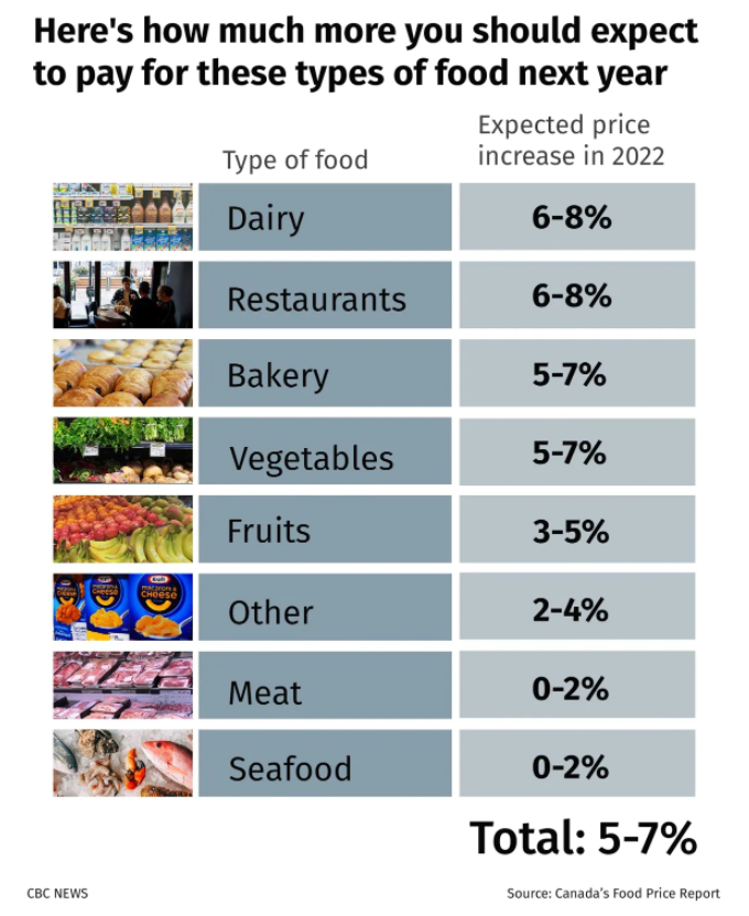 Canada’s Food Price Report for 2022 predicts a 5% to 7% increase in food costs.