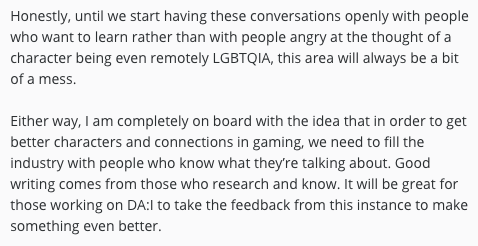 Really interesting talk in the comments from @TOTOKITTY re: LGBTQIA+ writing in games. http://femhype.com/2015/05/19/representation-matters-gender-identity-krems-inclusion-in-dragon-age/ …pic.twitter.com/wHNw9Gv7ex