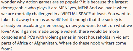 A taste of what it's like to venture into the pending comments section of a feminist gaming blog.