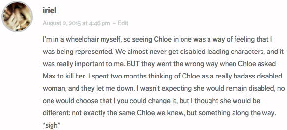 #LifeIsStrangeEpisode4 spoilers! @Irielilla's heartfelt commentary on Chloe + her disability: http://femhype.com/2015/07/28/open-forum-hang-with-us-to-discuss-life-is-strange-episode-4/ …pic.twitter.com/9CFvMBOSDG