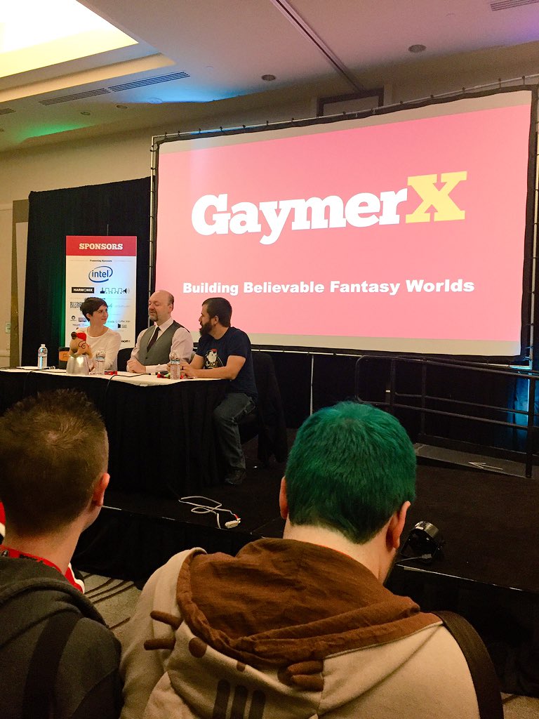 Line for "Building Believable Fantasy Worlds" panel with @davidgaider, @selmaleh, & more says a lot about #GX3's love for @bioware.