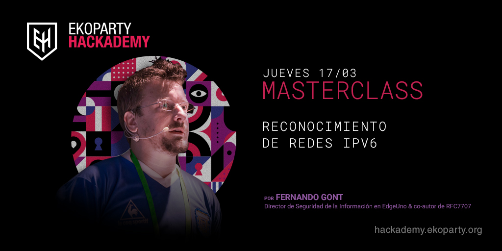 @FernandoGont, nuestro Director de Seguridad de la Información, sobre Reconocimiento de Redes IPV6 para Ekoparty Hackademy.