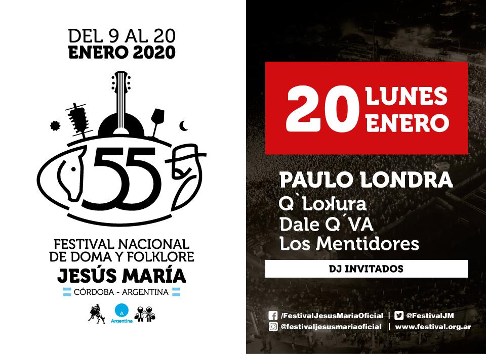 La #NocheExtra llega de la mano de Paulo Londra , Q' Lokura , Dale Q' Va y Los Mentidores . ¿Venís a bailar con nosotros?#FestivalJM2020#JesúsMaría#ColoryCoraje#NocheExtrapic.twitter.com/mng5Oo7Ip2