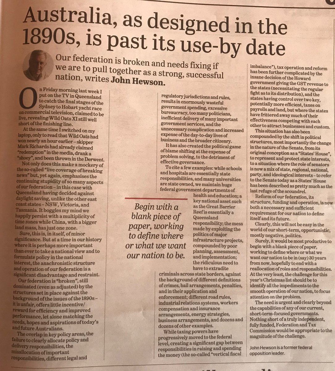 Starting with a blank page is easier said than done. But one starting point might be to attempt to agree a set of principles on which the Australian system of government should be based for 21st century.https://twitter.com/danielsutton10/status/1080617579037700096 …