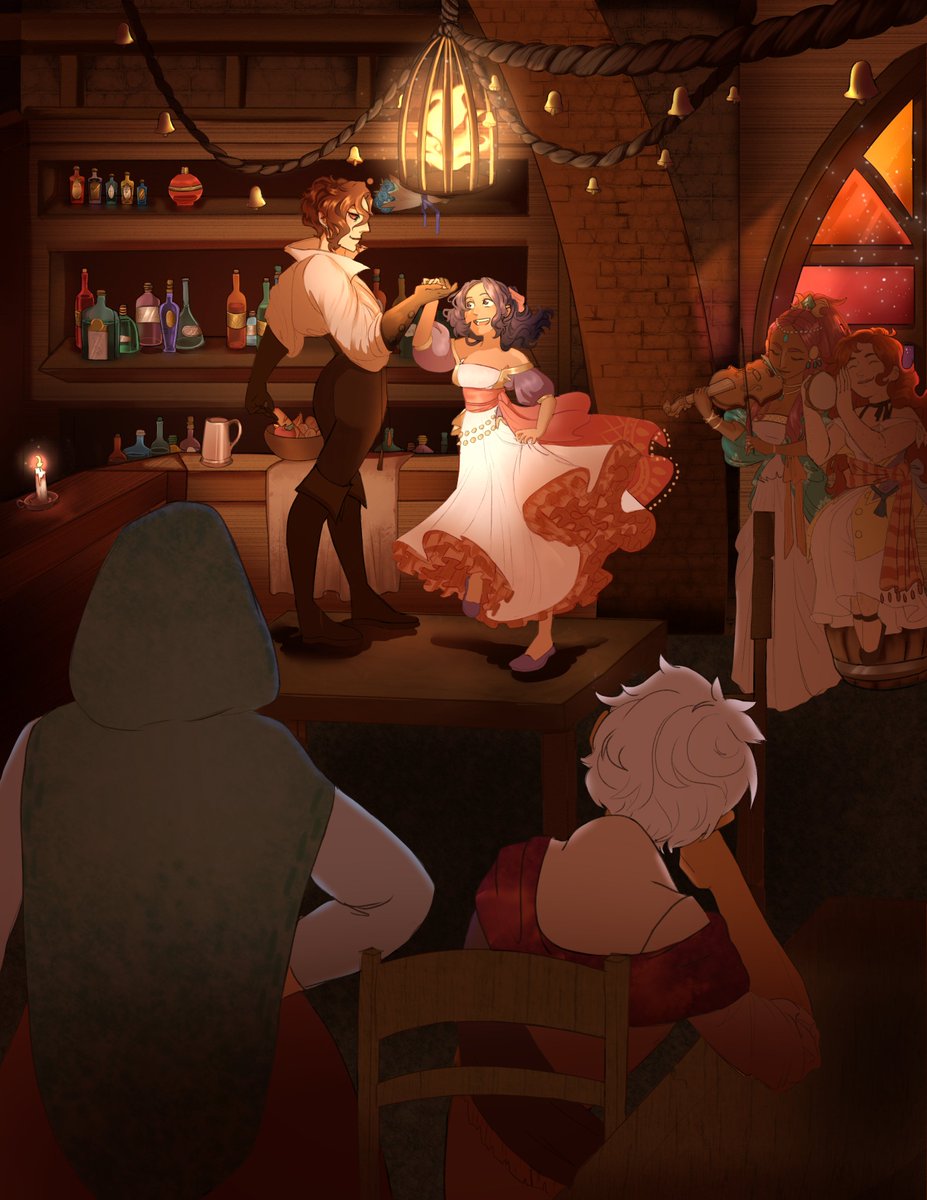 We were given permission to post our full piece from the @LoveAlwaysZine , a zine for #TheArcanaGame ! A digital version is still available, and the proceeds go to The Trevor Project! A wonderful charity with a wonderful cause! Anyways, Here's an Apprentice dancing with Julian!pic.twitter.com/RLhSjYv4VH
