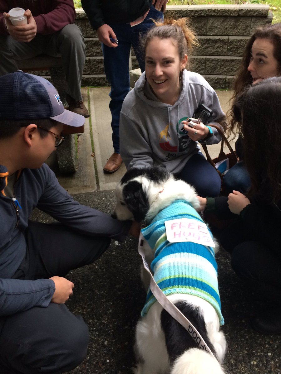 @VIUniversity to help the kids cope with the stress of exams. Man I LOVE my job!!!!, even if Mom only pays me in treats. Exams are done; school is done! Yay!!!Happy holiday break guys... you all earned it and thanks for the