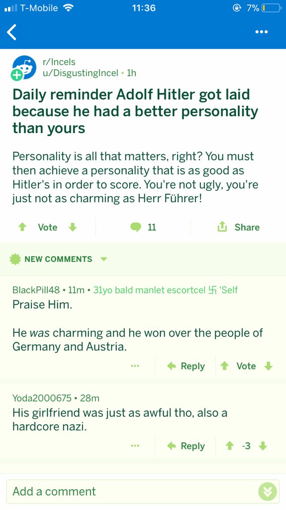Why do they keep making parallels with incels and WWII...pic.twitter.com/aKtQbovlCK