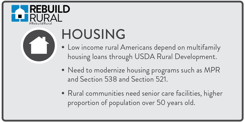 From single family homes to senior living facilities, rural residents depend on access to safe, affordable housing. Through government provided loans & modernizing housing acts, we can ensure housing for those who need it most.
