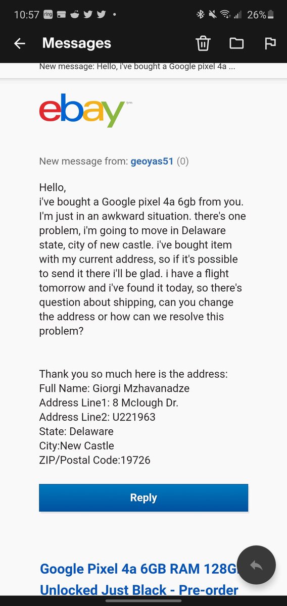 This guy tried to scam me out of a Pixel 4a. Here's his address. Have fun