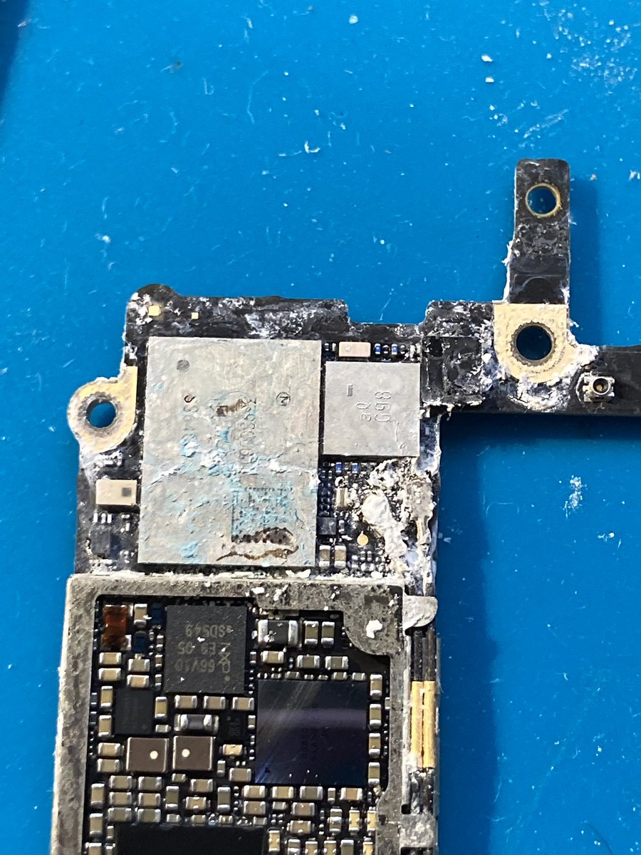 iphone 6. test battery and screen and , somehow it works. the board is literally dented near baseband, and near screen connectors. but everything seems to work?????? id show the dent but it barely can be seen on camera. maybe the shield dented so slightly that it didnt evenpic.twitter.com/LtkD55o0Ou
