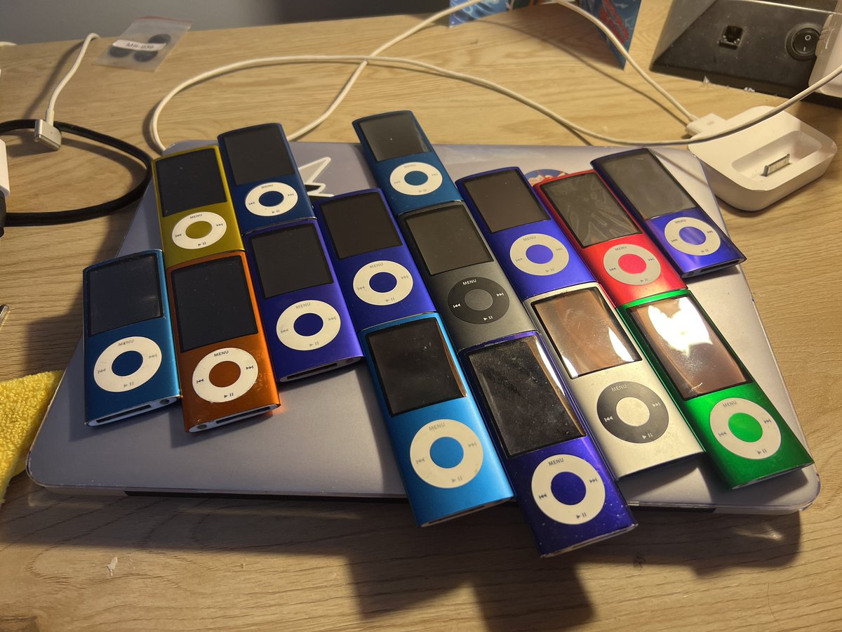 When Steve Jobs presented nano-CHROMATIC (me), it made my 6 year old self go wild!!! Here’s all my 4th/5th gen nanos with bad batteries and some with broken screens