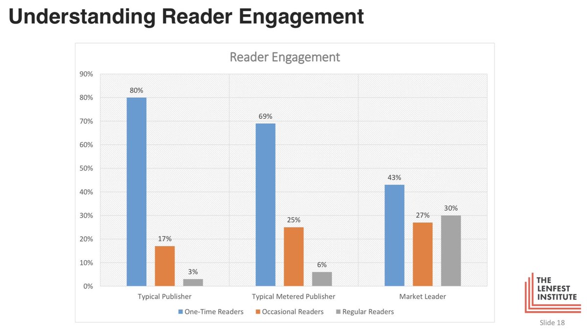 6/ Their inability to prove value (and the misleading nature of huge traffic figures) is easy to show For every 100 unique viewers, only 17 occasionally returned and 3 regularly. And up to 80% of regulars only came back from other social clicks, versus direct access /brand valuepic.twitter.com/q2Wydv3JP8