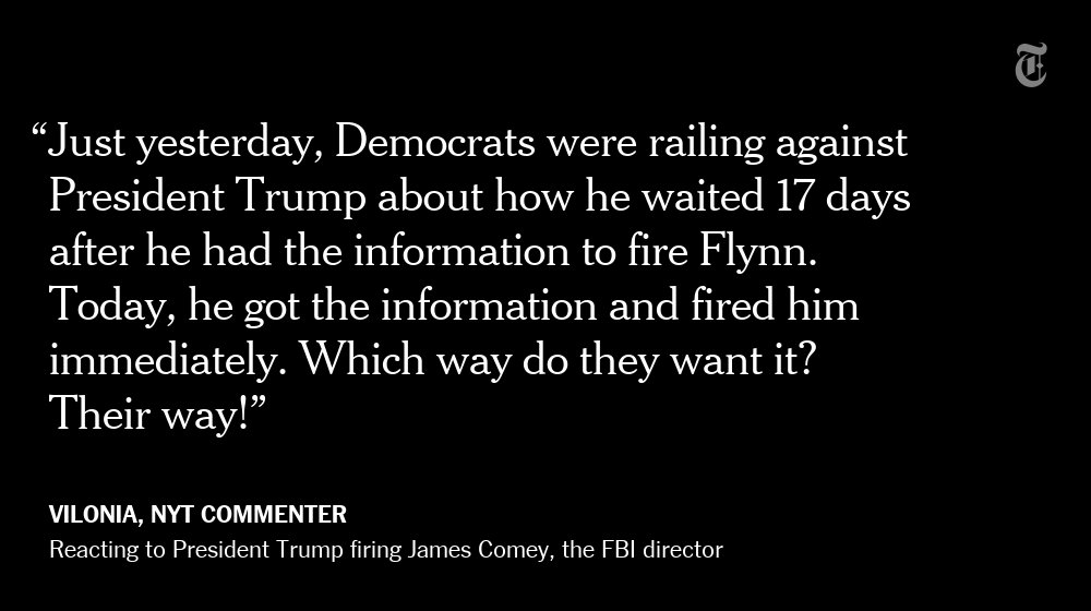 One NYT reader's reaction to President Trump firing James Comey http://nyti.ms/2qXK9Up pic.twitter.com/4w6DbfvE3s
