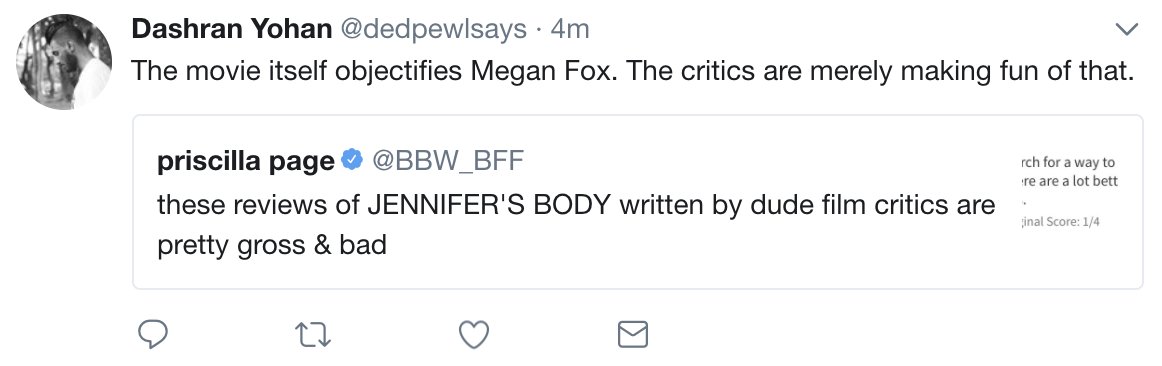 love dudes who insist JENNIFER'S BODY has an issue with "male gaze" & that it's somehow Karyn Kusama's fault, not their own fuckin eyeballs