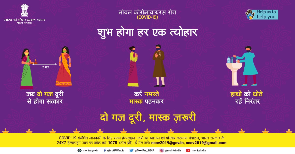 #COVID19 से अपने और अपनों को बचाने के लिए हमेशा दो गज दूरी बनाकर रहें और मास्क पहनें। 2 गज की दूरी, मास्क है ज़रूरी।#Unite2FightCoronapic.twitter.com/Udr8Jv019D