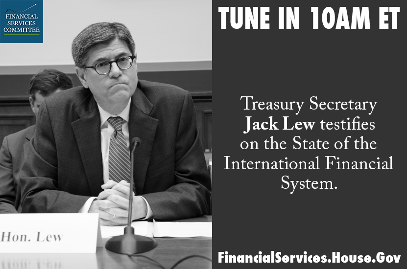 TUNE IN 10AM ET –Treasury Sec. Lew testifies on international financial system http://1.usa.gov/1Bp4KOH pic.twitter.com/Fa6sHZOv7f