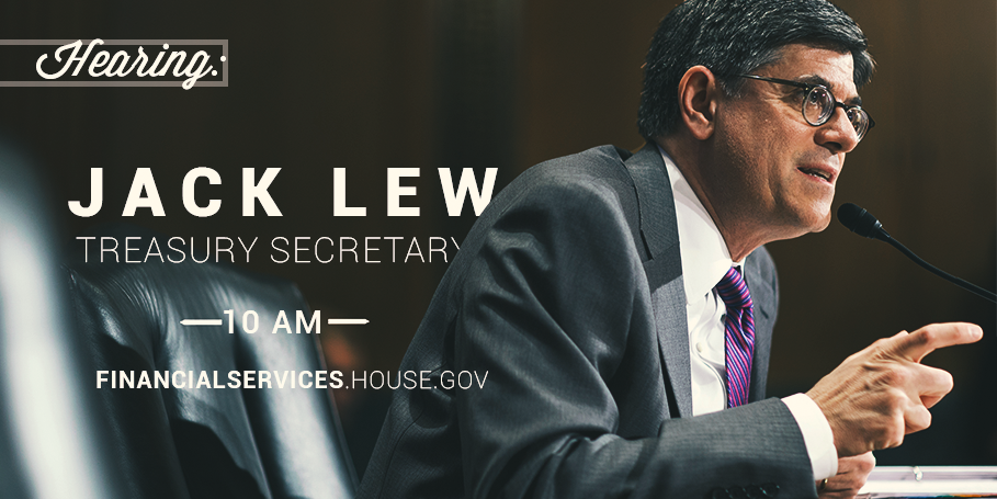 Happening Tomorrow: @USTreasury Secretary Jack Lew testifies. Details→ http://1.usa.gov/1NbGCbD pic.twitter.com/wIsD4QKOkr