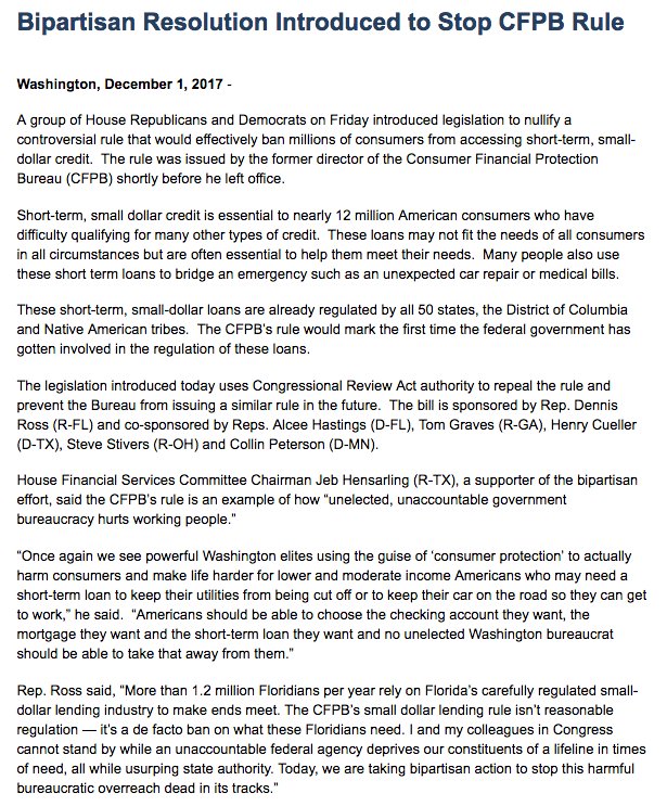 Bipartisan Resolution Introduced to Stop #CFPB Rule http://bit.ly/2nmlhJ0 pic.twitter.com/tyGgR85bMj