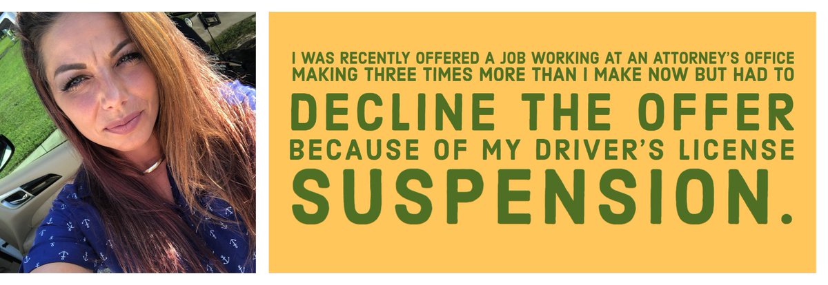 Florida needs to reform its cruel & counterproductive driver's license suspension laws. Florida's forcing people to make an impossible choice: stop driving—and lose access to work & basic necessities—or keep driving and risk criminal charges & more fines. https://finesandfeesjusticecenter.org/story-map/florida-drivers-license-suspensions/ …pic.twitter.com/CLTIDQdbXd
