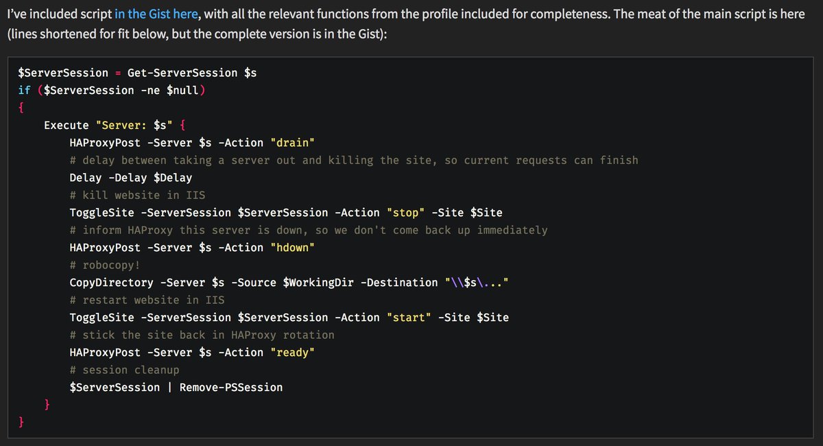 Moved the code blocks on my blog to FiraCode, it was just too damn pretty not to. Example: https://nickcraver.com/blog/2016/05/03/stack-overflow-how-we-do-deployment-2016-edition/ …pic.twitter.com/GCcSLbzPdz