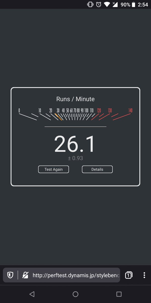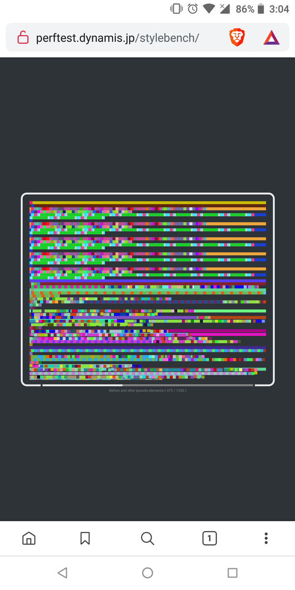 Still bored. Ran Stylebench. Preview Nightly finished in 2 minutes. Brave did not reach half of the benchmark in 6 minutes. It's tab crashed on first run. I wonder how they calculate the estimated time saved. Test it on your phone http://perftest.dynamis.jp/stylebench/ pic.twitter.com/P7jSygoSxI