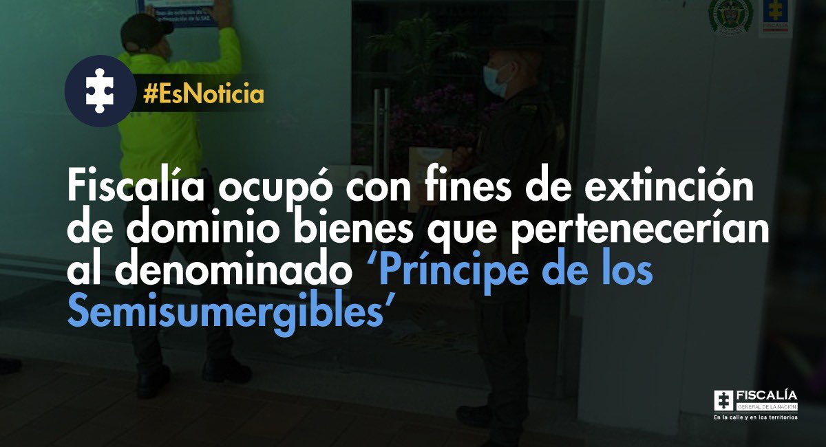 Medidas cautelares sobre bienes que habrían sido adquiridos con dineros ilícitos obtenidos por Óscar Adriano Quintero Rengifo, conocido como el ‘Príncipe de los Sumergibles’. Las propiedades están avaluadas en 1.029 millones de pesos. Información: https://bit.ly/2W2Cg4S pic.twitter.com/QSd8zFCw4n