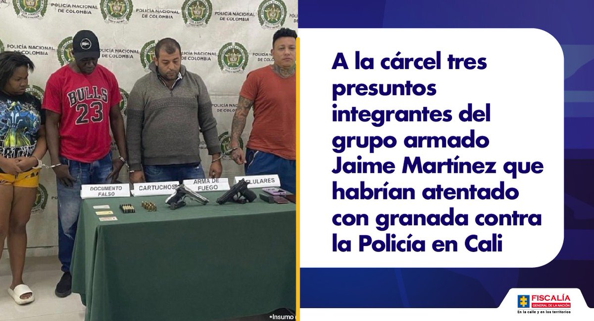 #Fiscalía judicializó a Jonathan Vidales Osorio, alias ‘Mal Hijo’; Yuliana Urquina Moya y María Alejandra Cardona Gutiérrez por porte ilegal armas de fuego y estupefacientes en#ValleDelCauca. Más información:https://bit.ly/3JO0JPLThanks. Twitter will use this info to make your timeline better. UndoUndo -