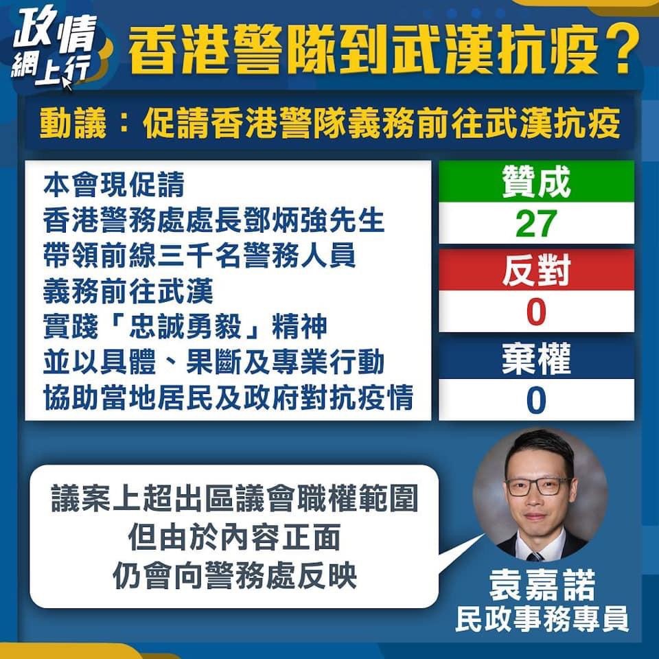 元朗區議會一致通過動議,促請香港警隊義務前往武漢抗疫
