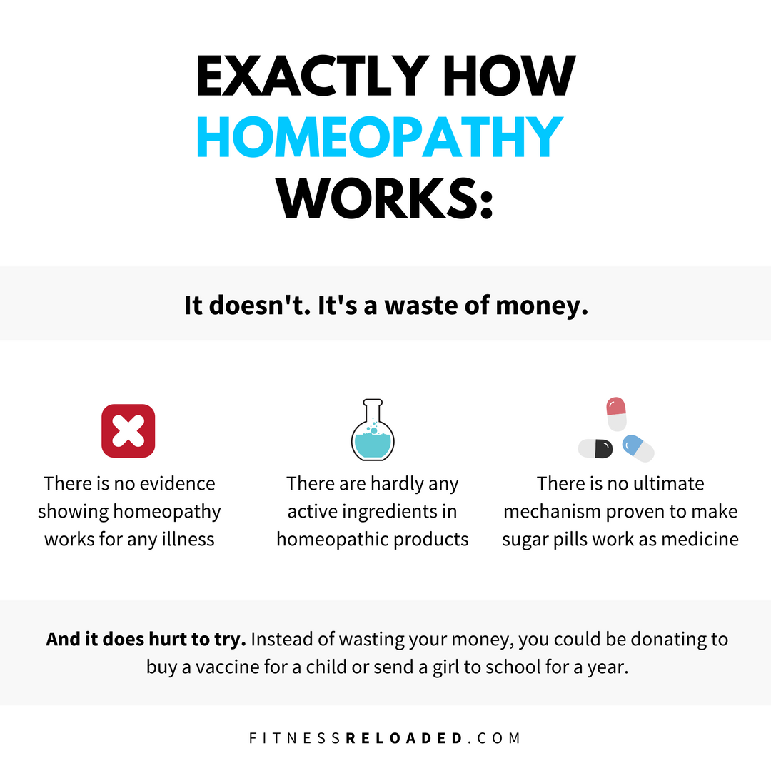 If you're considering homeopathy, don't bother because it doesn't work! Instead of wasting your money AND supporting pseudoscience, think about all the other ways you could spend that money! More on Homeopathy: https://buff.ly/2G5ypqF