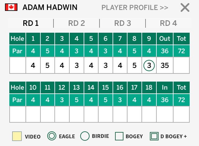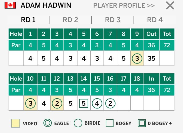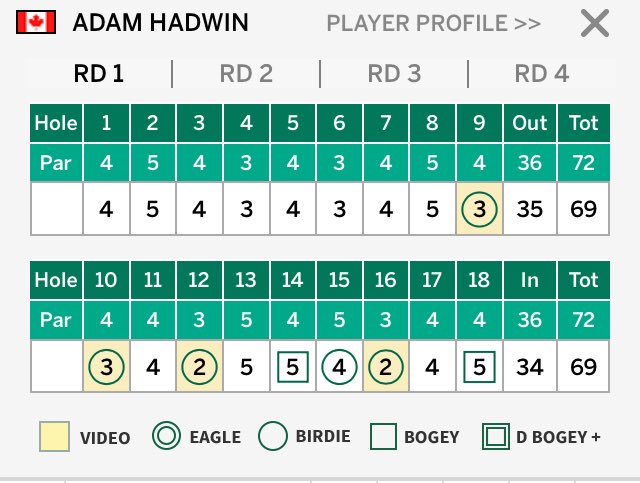 @ahadwingolf finishes round one of the 2018@TheMasters at -3 (69) His first round in the 60’s at Augusta National in five played to date. Much to build on for the rounds ahead.pic.twitter.com/Yzas6raTFD