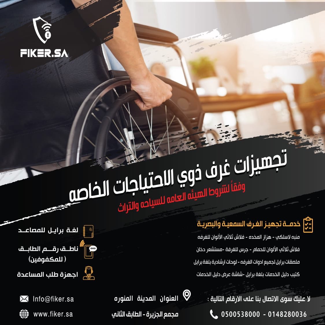 تجهيز غرف ذوي الاعاقة السمعيه والبصريه حسب متطلبات الهيئة العامه للسياحهpic.twitter.com/fSQ8YGcmRk