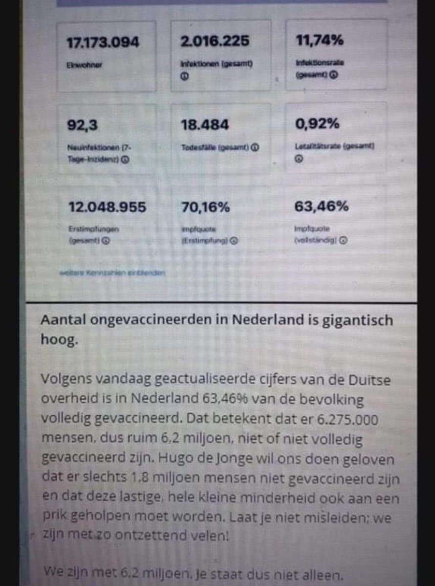 Of het cijfer van 87% klopt niet -wat mij eerder lijkt. Er was onvoldoende registratie vd gezette spuiten. Dus geschat op uitgeleverde spuiten. Lekker betrouwbaar. Berekeningen laten zien ongeveer 63% werkelijk ingespoten. Gerucht: geen definitieve goedkeuring voor de vaccins.