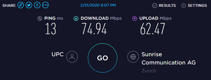 Speedtest zur Primetime. Ein Bild zeigt die Verbindung über den Provider, der bei uns künftig nur noch für TV zuständig sein wird, das andere was