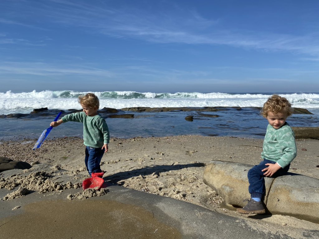 Balduin presents his toy model in the Kids’ Economic Association session at La Jolla Beach—Samson gives a devastating discussion. Start early!