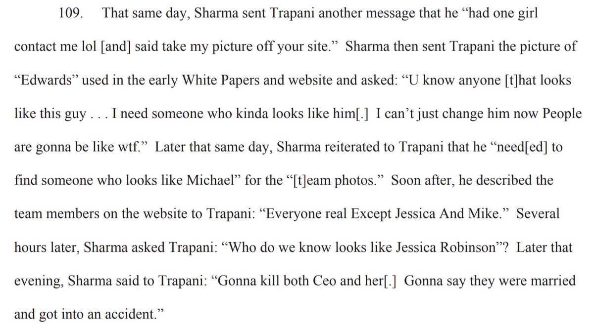 "Later that evening, Sharma said to Trapani: "Gonna kill both Ceo and her. Gonna say they were married and got into an accident."