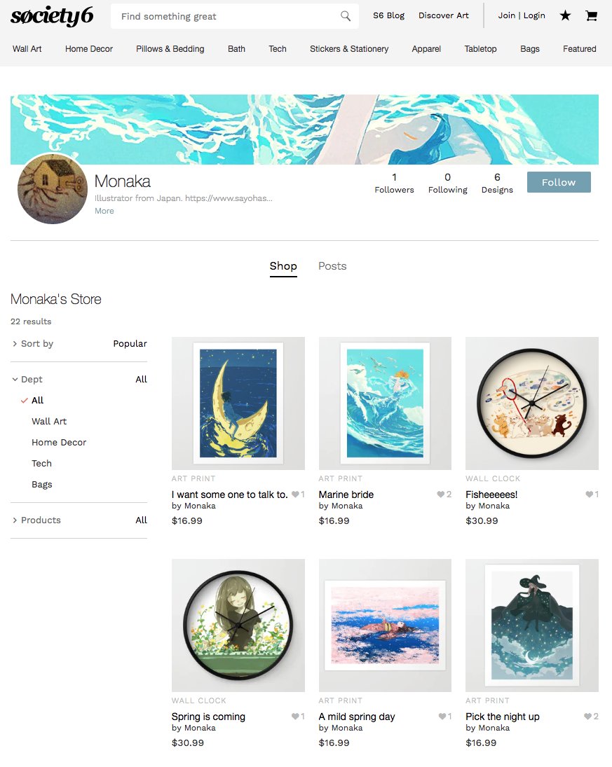 I started society6. International shipping is available! https://society6.com/shirono_e  pic.twitter.com/RfKbGzKoZG