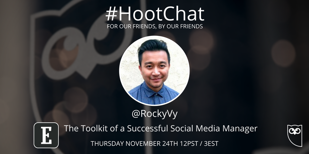 #HootChat. Will you be joining us and@rockyvy in an hour to talk about the tools of a great social media manager?pic.twitter.com/zFVJWsoPf3