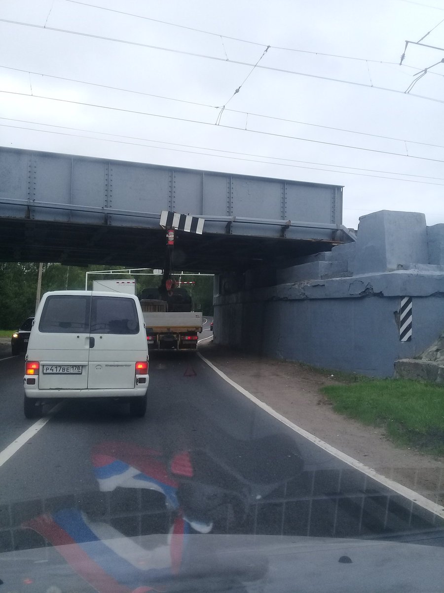 На въезде в Пушкин, со стороны Павловска, застрял под мостом автокран.pic.twitter.com/d8AtPFOO22