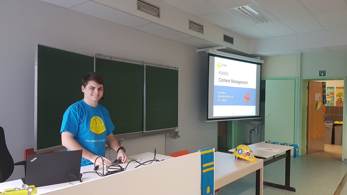 #FOREMAN booth@fosdem to discuss different provisioning methods, cool features like#ansible integration !pic.twitter.com/NdmeQ3Hmo7
