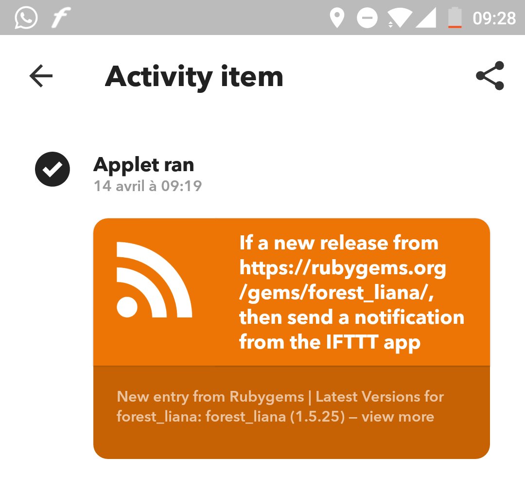 @ForestSaaS with this nice#IFTTT applet, I am now notified for every new releases of the liana. Next step is auto-trigerring bundle updatepic.twitter.com/hKToiYJTJf